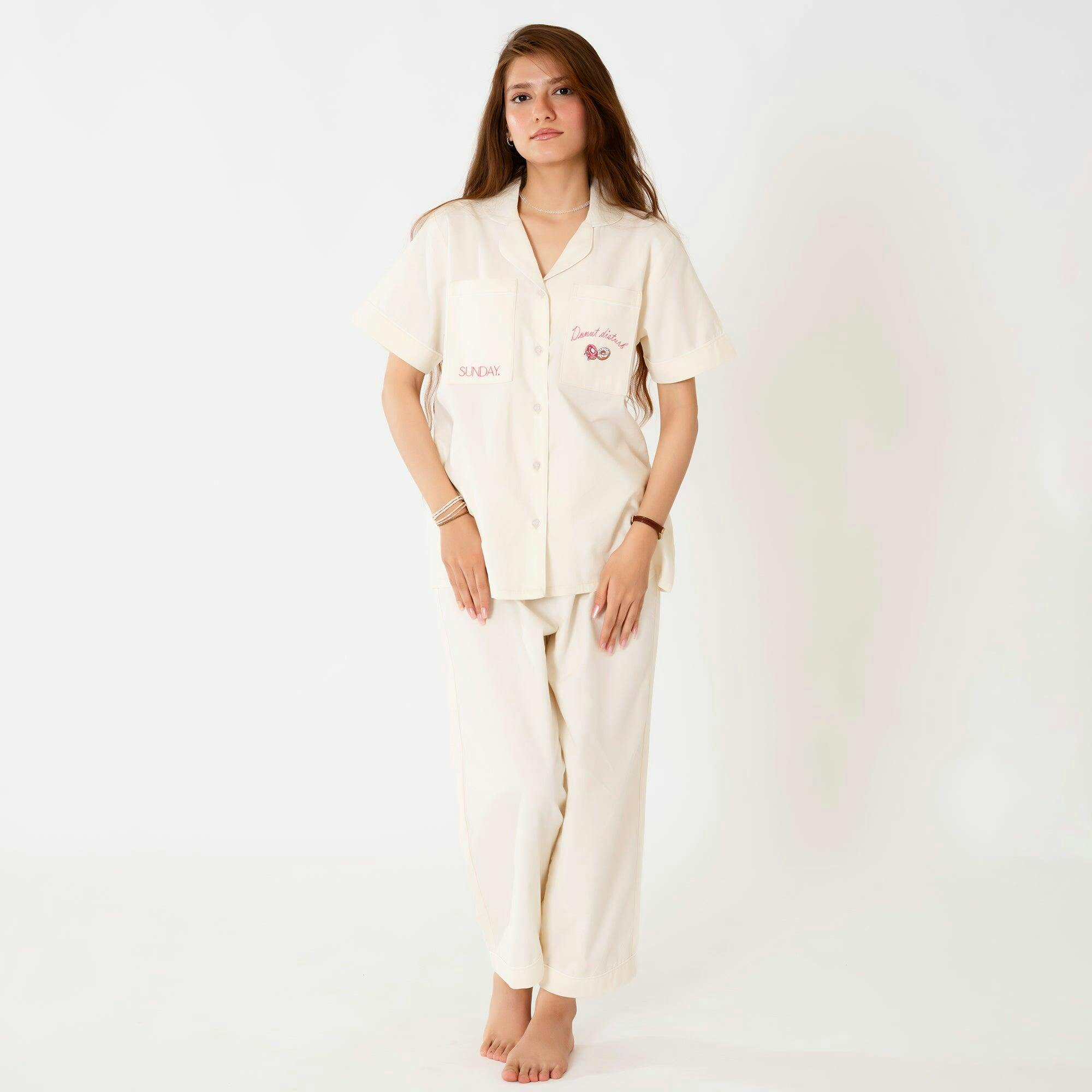 Made from 100% pure cotton, our Sunday Percale nightwear brings breathable comfort with a crisp, cool feel that’s perfect for warm Pakistani nights. For the first time in Pakistan, we’ve introduced subtle pocket protection a discreet four-layer design in key areas that offers gentle structure and coverage without compromising softness or airflow. Tailored in-house by skilled hands, each piece seamlessly blends classic cotton with thoughtful innovation, allowing you to lounge, sleep, and unwind feeling effortlessly put together.